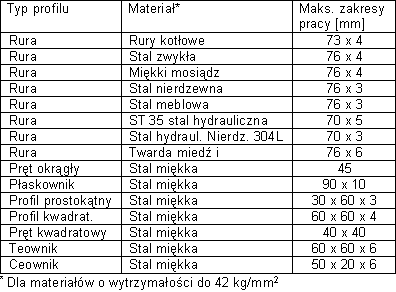 Zakres średnic rur od Ø 5 mm do Ø 76 x 3 mm
