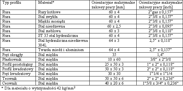 Minimalny promień gięcia 2 x Ø zależny od parametrów rury